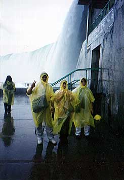 カナダ滝の滝の裏探検ツアー これもすごかった。 特に ↓ はびしょびしょ!! カメラのレンズが大変でした。 ちょうど、台風の時の「横殴りの雨」 ですね |