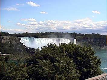 | アメリカ滝の眺め まだ遠いですから ん〜〜 こんなもんか!! でも、音はすごいです。 |