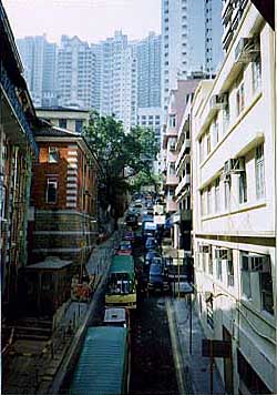 香港の街は小さい ・・で 特に香港等では斜面に沿って住宅が多く建っています。 これは、MTR(地下鉄)の中環駅から山手にのびる ヒルサイドエスカレーターに沿った町並み このエスカレーター 結構おもしろいですよ 20基あるとか |