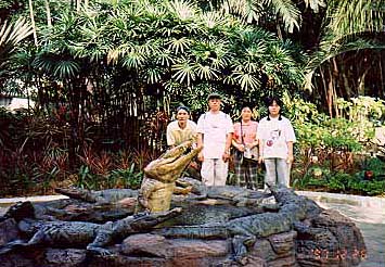 | ダウンタウンの西・・というかシンガポールの西部 工業地帯のジュロンですが、こちらは お約束のバードパークです。 ↓ 85年に初めてここへ行ったとき 目の前で羽を広げた孔雀に遭遇!! 大感激しました。 右下はバードパーク近くの爬虫類園 ワニ園から名前が変わってすぐの頃です 97年 |