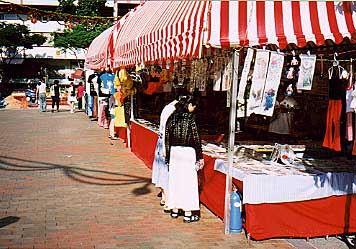 MRTブギス駅からブギスストリートへ 結構にぎやかであやしい物がどっさり 今、彼女たちは インスタントタトゥーを物色中!! |