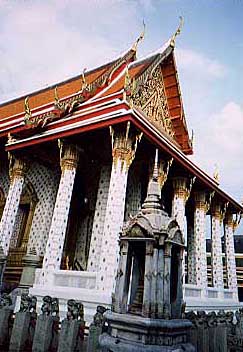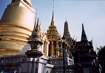 | ワット・プラ・ケオ エメラルド寺院です きれいですよここは。 → は仏舎利殿 3つの様式の仏舎利殿が並びます。 見事です。 ↓ はアンコールワットの模型 |
