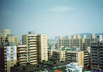| さるビルの14楼(14階)よりの眺め ちょうど中央遠くに小さく見えるのはかの有名な円山飯店 こんな感じで所狭しとビルが建ち並ぶ |