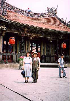 | 華西街の南西のはずれにある 龍山寺です。 台北で一番古い寺とか ここへ来ていつも思うことは 台湾の人たちはみんな大変信仰心が厚いこと。 ミニスカートでおへそ丸出しの若い娘が 熱心にお祈りしている姿をよく見かけます。 |