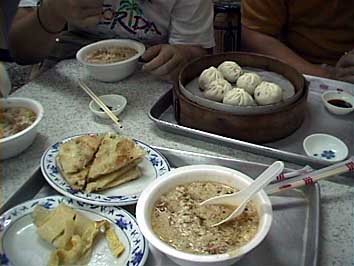 ←メニュー 右から・・・・ 小籠包(しゃおろんぽー) 鹹豆奬(しぇんとーちゃん) 韮菜盒(ちょーつぁいふぉ) 蛋餅(たんぴん) |