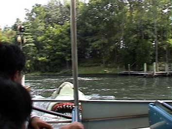 | フロリダだけののアトラクション ジョーズ 次の瞬間、水が大量にボートの中に入ってきます。 カメラをのぞいていた父だけが、 靴 スプラッシュッ!! |